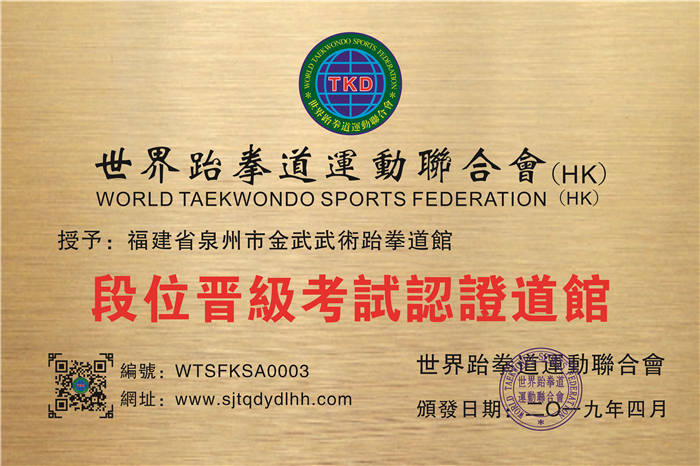 • 福建省泉州市金武武術跆拳道館加入聯合會2023-06-11
